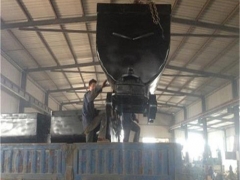 固定式矿车车箱与车架固定联接,须用翻车机将矿车翻转卸载。其基本组成为车箱、车架、缓冲器、联接器和行走机构。车架为一金属结构,能承受牵引力、制动力、矿车之间的碰撞力和钢轨冲击力缓冲器装在车架两端,用以缓和两车之间的冲击力。联接器是联接机车和矿车的部件,常用的有插销链环和回转链,大型矿车采用兼具缓冲器作用的自动车钩。行走机构是由4个车轮和2根轴组成的两个轮对。矿车和物料的总和超过20吨时,一般应增加轮对数目。对多于两个轮对的矿车,为便于通过弯道将两个轮对组成一个有转盘的小车,这种小车称为转向架。